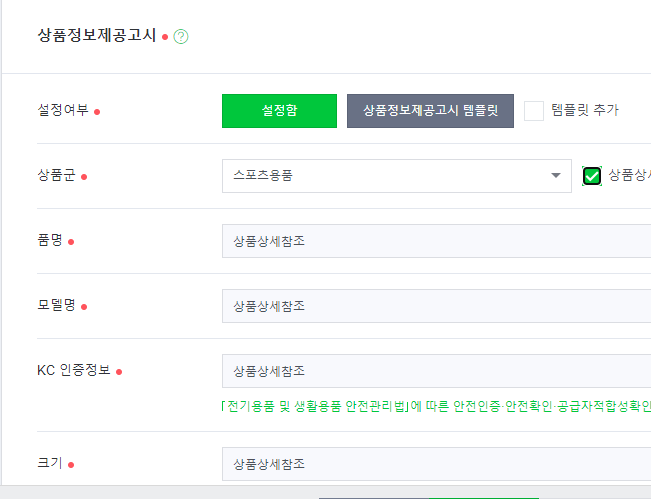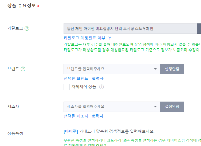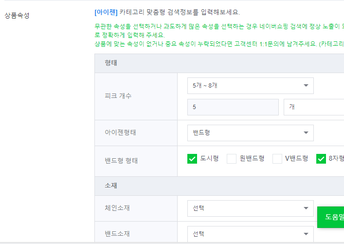 상품속성이 있다면 상세페이지에 쓰여있는 것을 찾아서 하나식 체크해 줍니다.