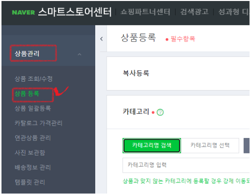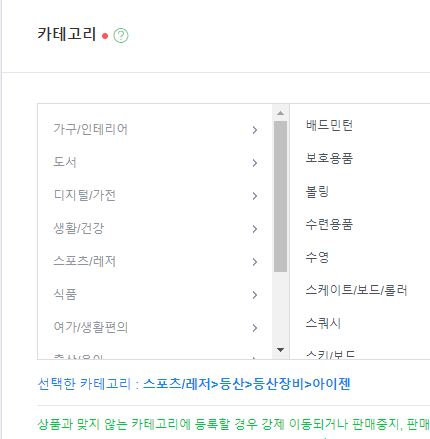 카테고리에서 등록하실 상품카테고리를 선택하여줍니다.