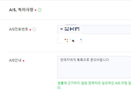 AS담당자 정보를 입력합니다. 톡톡으로 문의바란 다고 써주시는 게 가장 좋습니다.