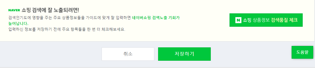 쇼핑상품 검색품질을 체크해서 빨간색버튼이 없는지 확인하신 후에 저장하기를 눌러줍니다. 그럼 제사이트로 이동해 보겠습니다.