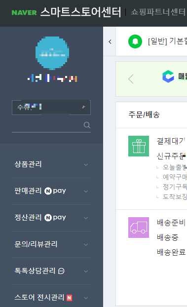 스마트스토어센터 상품관리를 클릭하시면 두 번째 줄에 상품등록이 보이실 겁니다. 상품등록을 클릭하세요