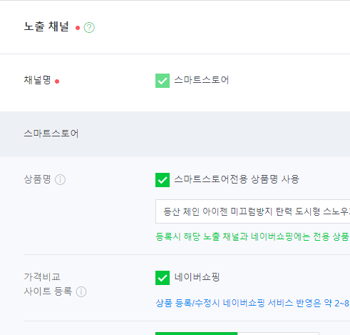 노출채널 체크해 줍니다.