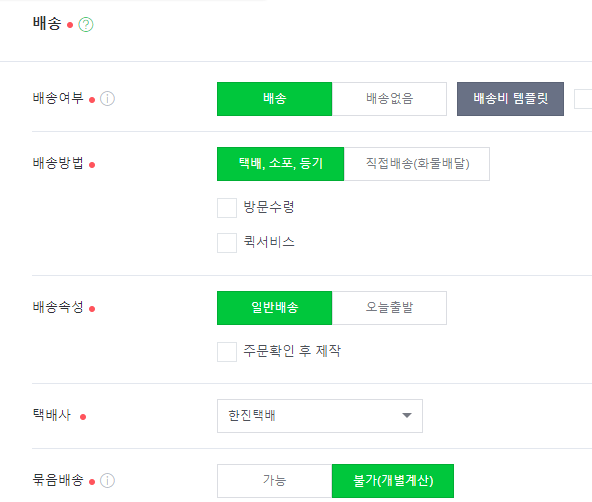 배송조건을 등록합니다.