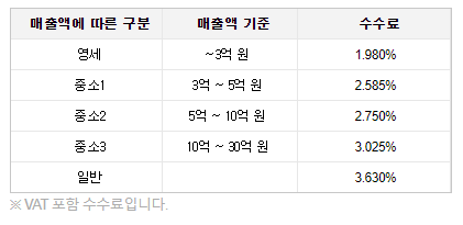 네이버페이 주문관리 수수료는 국세청기준의 매출 규모(영세/중소/일반)에 따라 자동적용됩니다.