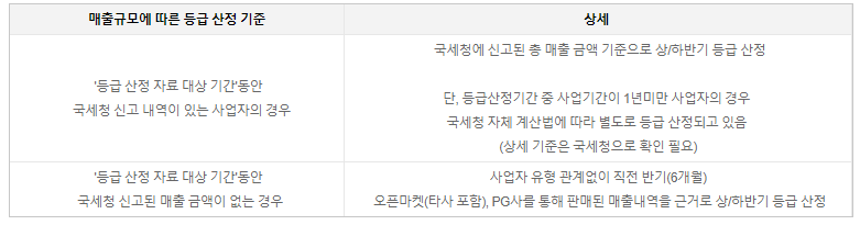 - 매출규모는 판매자님께서 국세청에 신고하신 사업자의 총매출 금액기분입니다(자사몰/네이버페이가맹점 포함)