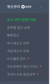 정산내역 메뉴에서는 일자별/주문 건별로의 정산내역을 모두 조회할 수 있으며, 아래의 조회방법을 순서대로 확인해 주세요.