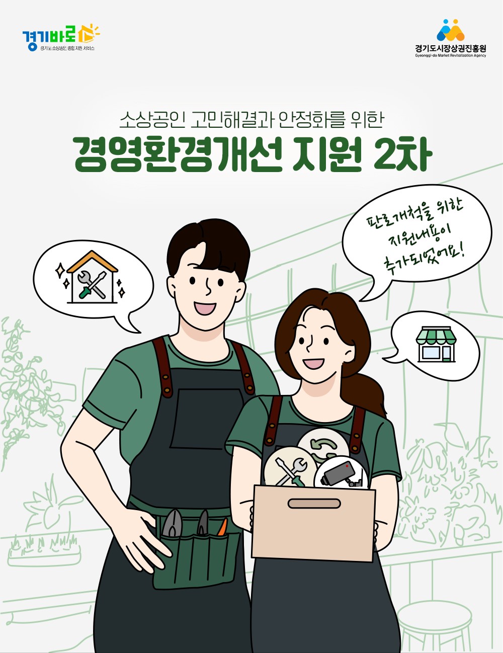 경기도와 경기도시장상권진흥원이 소상공인의 경영 안정을 위해 '2025년 2차 경기도 소상공인 경영환경개선사업'을 진행합니다.