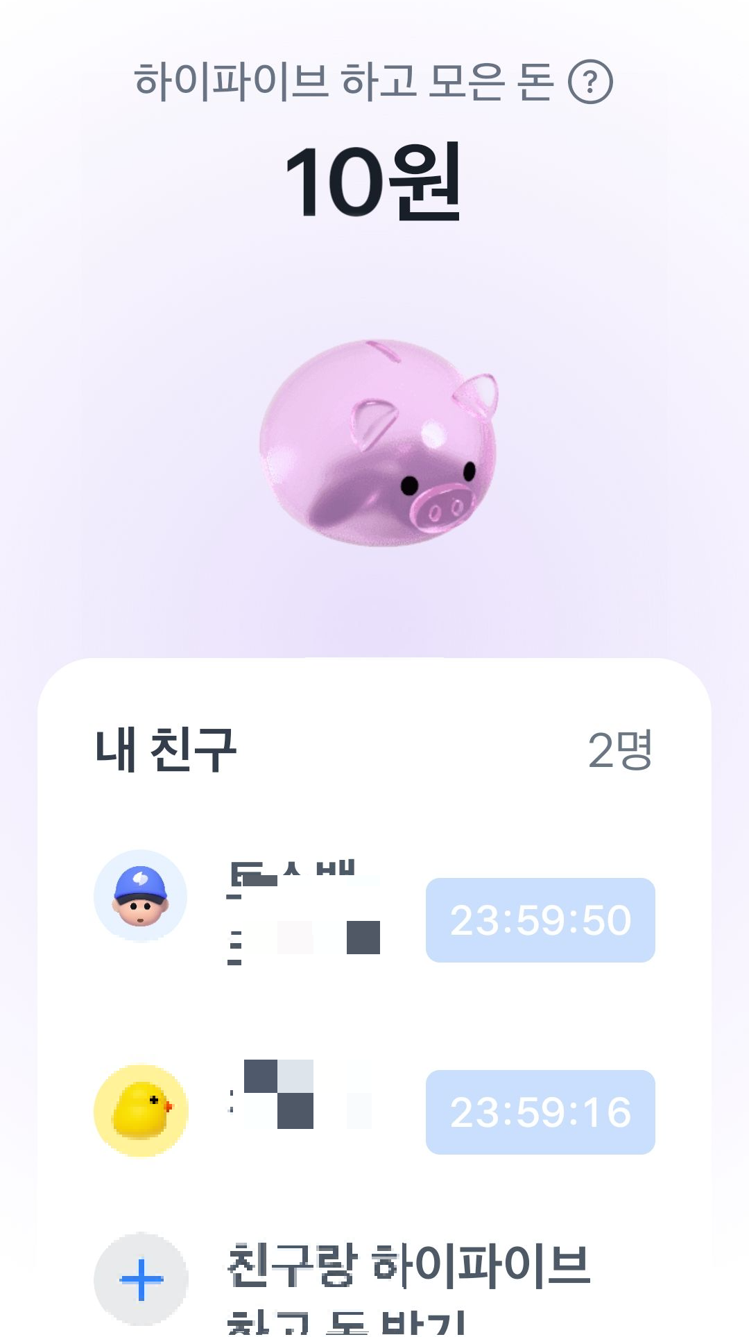 하이파이브하고 매일 돈받기를 누르면 친구목록에서 하이파이브를 하거나 친구의 링크로 들어가 하이파이브를 할 수 있습니다. 하이파이브를 하고 나면 이렇게 모은 돈이 보입니다.