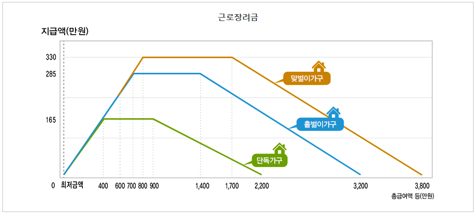 가구 유형에 따른 근로장려금 지급가능액