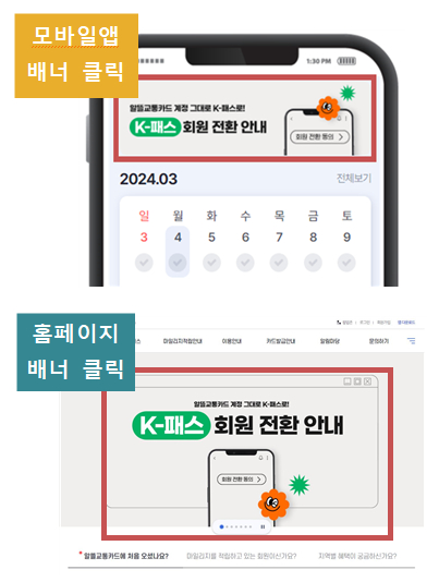 K-패스 교통카드 혜택을 받기 위해서는 회원 전환을 하거나 신규로 가입을 해야 합니다. 위 절차를 거치셔야만 마일리지 적립을 받으실 수 있습니다.